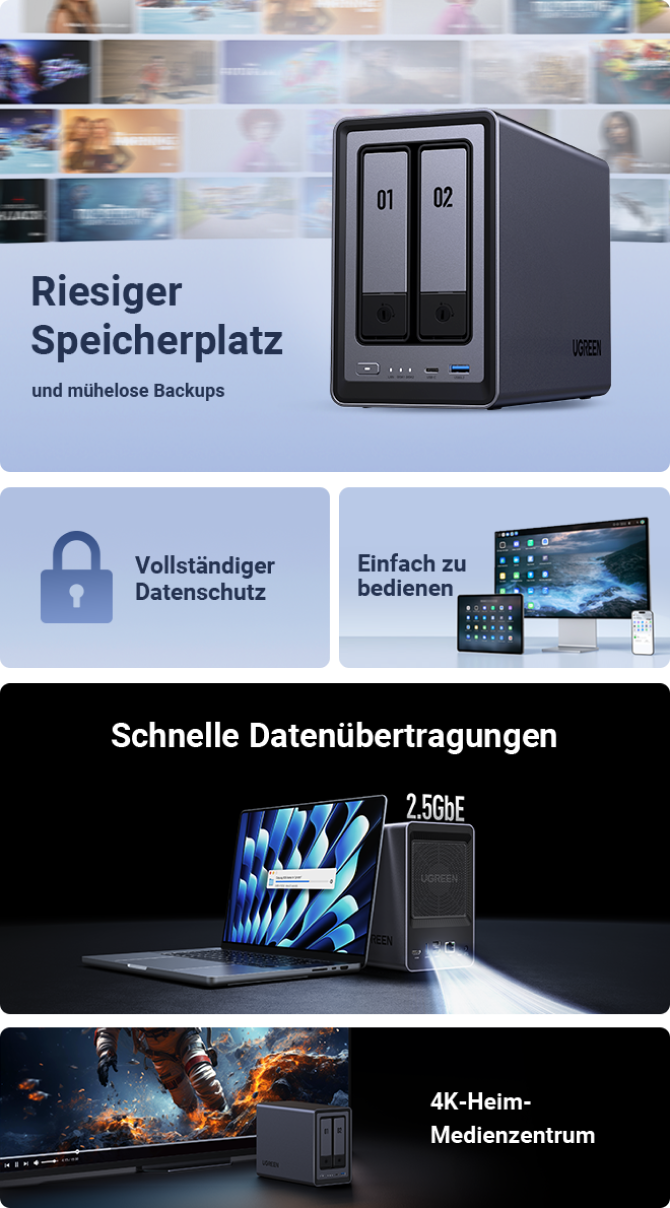 Auf Kickstarter hat die UGREEN NASync-Serie Unterstützung von über 13.000 Unterstützern erhalten, 6,6 Millionen Dollar gesammelt und sich als das am besten finanzierte NAS-Produkt auf Kickstarter etabliert, für das sie den "Best of Kickstarter"-Preis erhalten haben.
